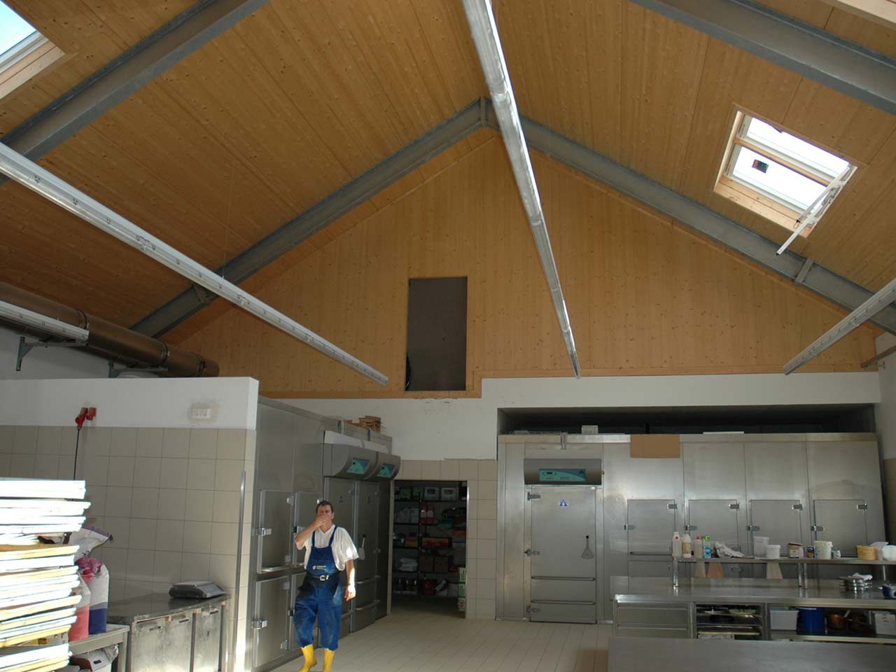 Neubau von Wänden und Dachkonstruktion aus massiven Holzelementen aus Brettschichtholz und Brettsperrholz