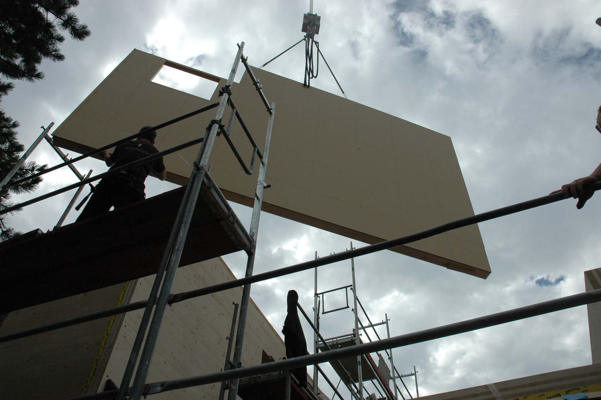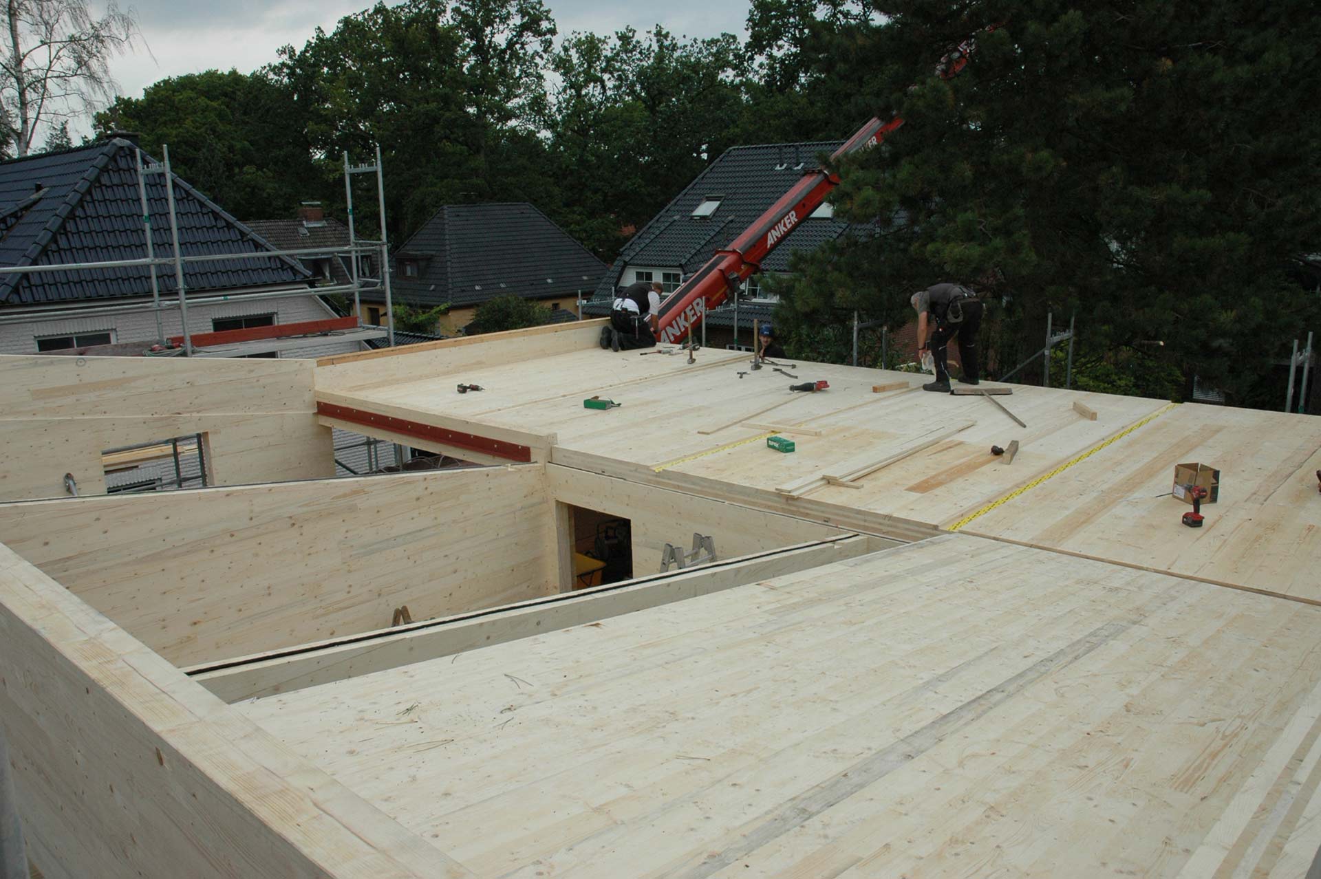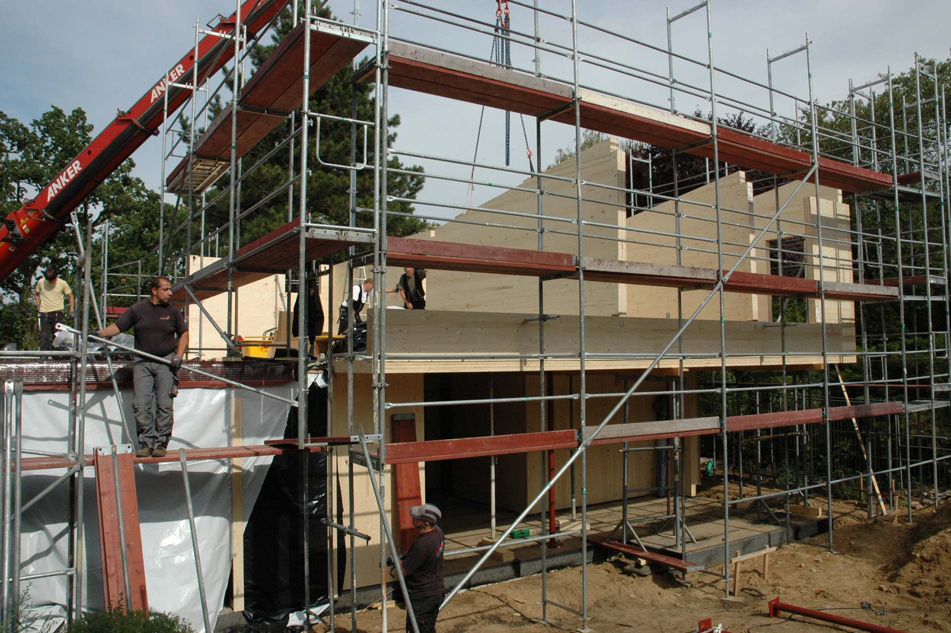 - Dämmebene in Holztafelbauweise vorgefertigt