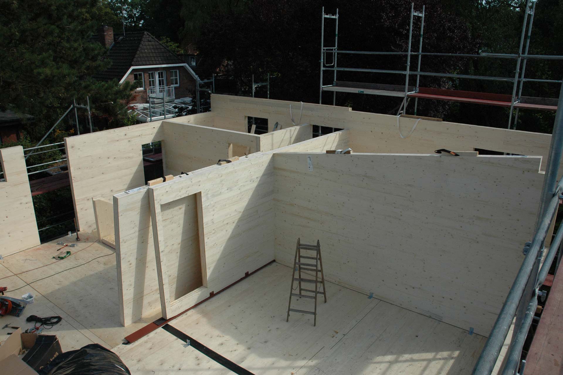 - Wände, Decke, Dach u. Treppe aus Fichten-Brettsperrholz