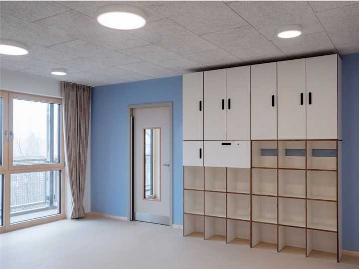 Neubau eines dreigeschossigen Hamburger Kitahauses am Schulstandort Röthmoorweg. Der Neubau beinhaltet sechs Kitagruppen, multifunktionale Flächen sowie Bürobereiche und Nebenräume.