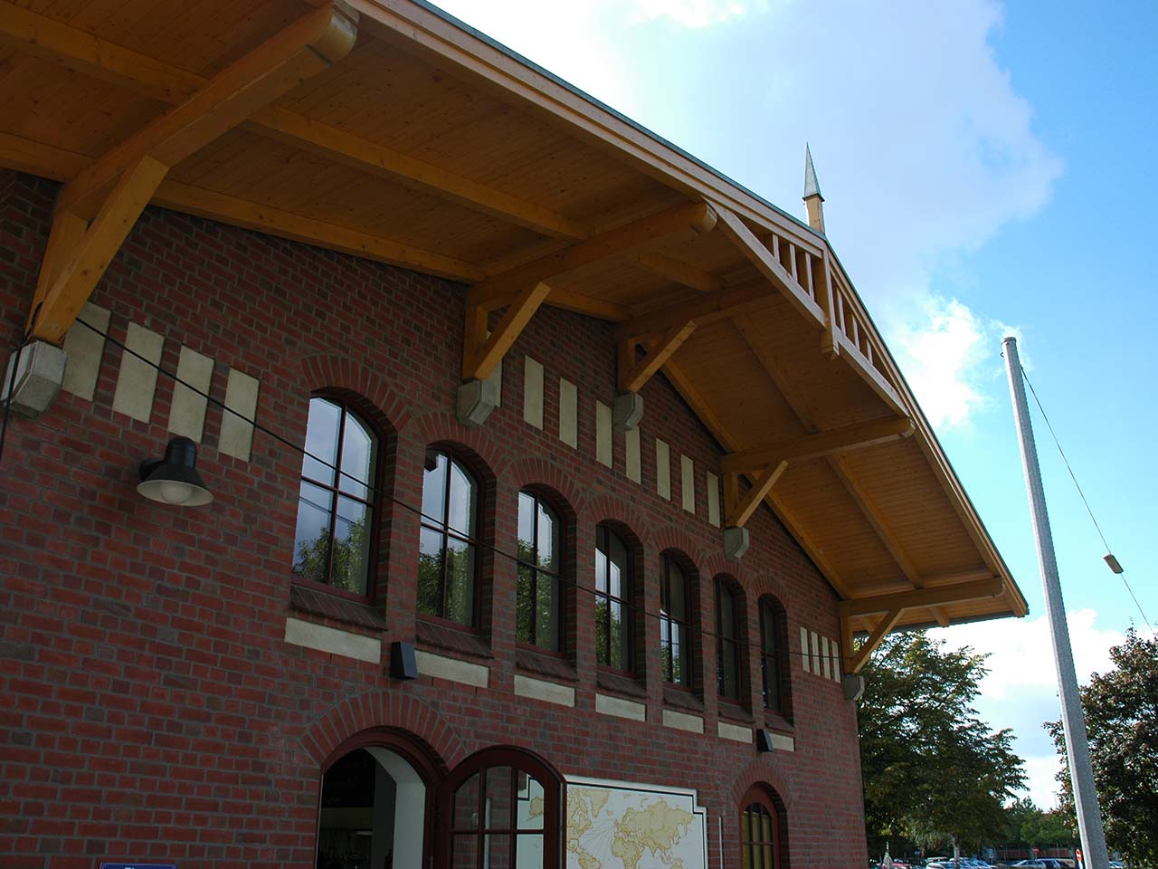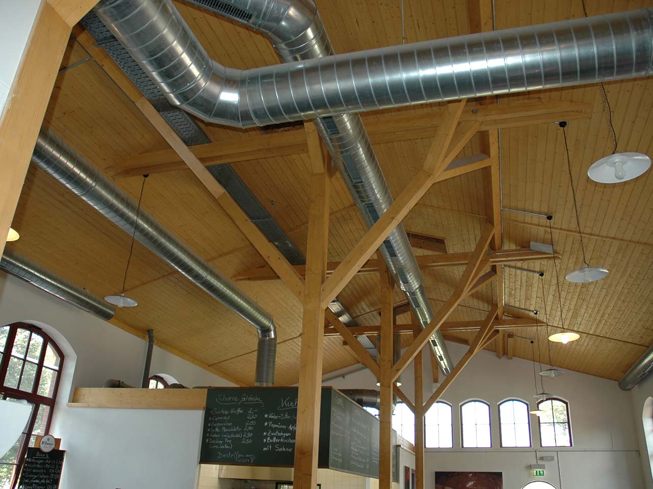 Nachbau historischer Dachkonstruktionen mit sichtbaren, traditionellen Holzverbindungen