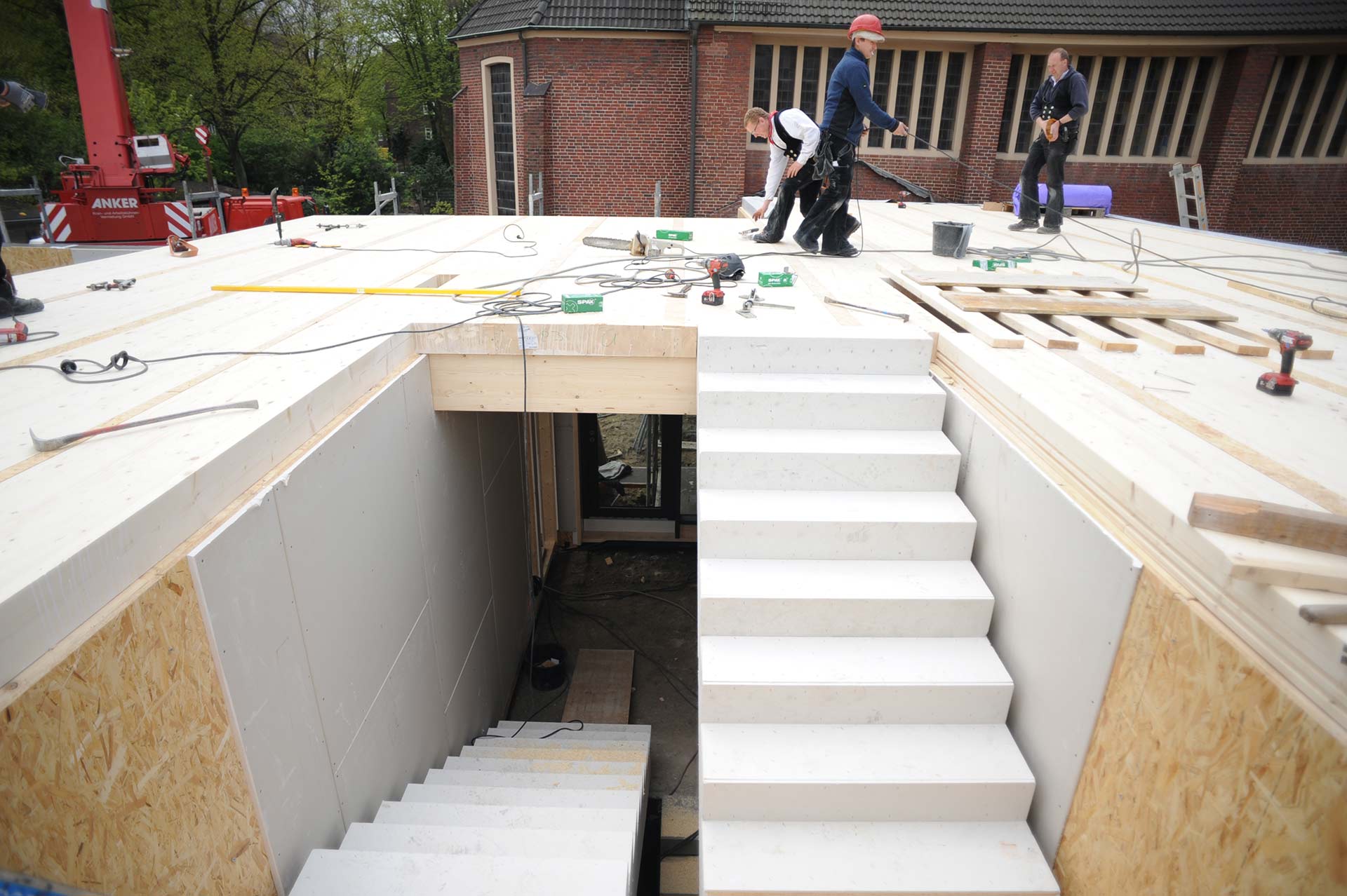 - Geschosstreppen aus Fichte-Brettsperrholz vorgefertigt