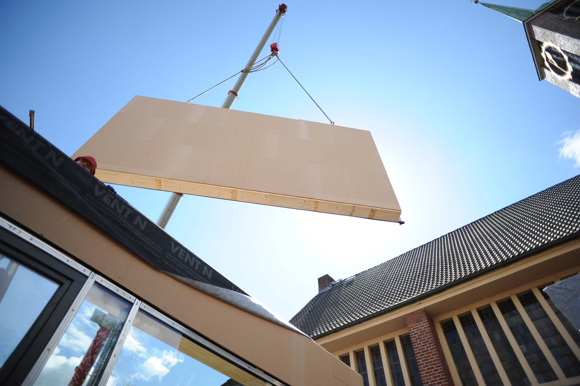 - Holztafelbauweise mit Massivholzdecken aus BSH-Elementen